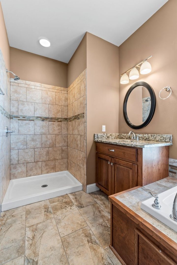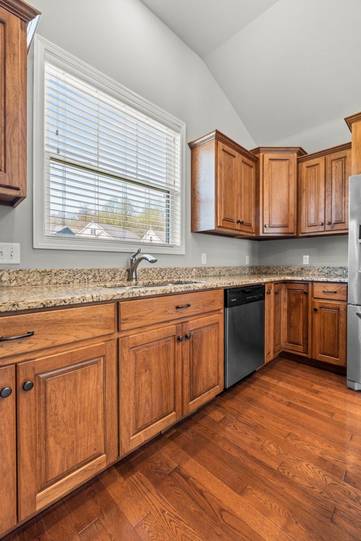 This stunning home in the Walden Park neighborhood offers modern comfort and style! Enjoy a spacious main suite with a separate garden tub and tiled shower, an open-concept kitchen, dining, and living area with vaulted ceilings, and a cozy gas fireplace. The basement features a large finished family room. Additional highlights include stainless steel appliances, hardwood, frieze carpet, and ceramic tile flooring, granite countertops, main-level laundry with wash basin, and two-inch blinds throughout.